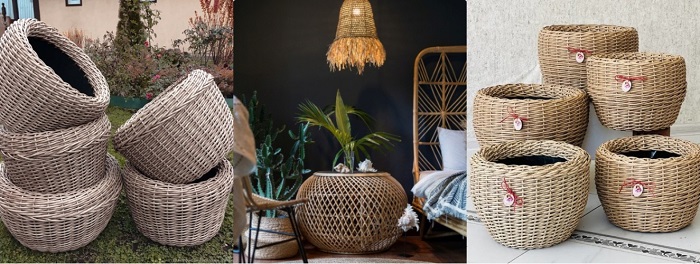 Особенно атмосферно и тепло смотрятся плетеные кашпо из ротанга, бамбука или джута. Они привносят ту самую рукотворную, природную текстуру, которая ассоциируется с экзотическим отдыхом. Такие вазоны часто используются как декоративные элементы интерьеров.